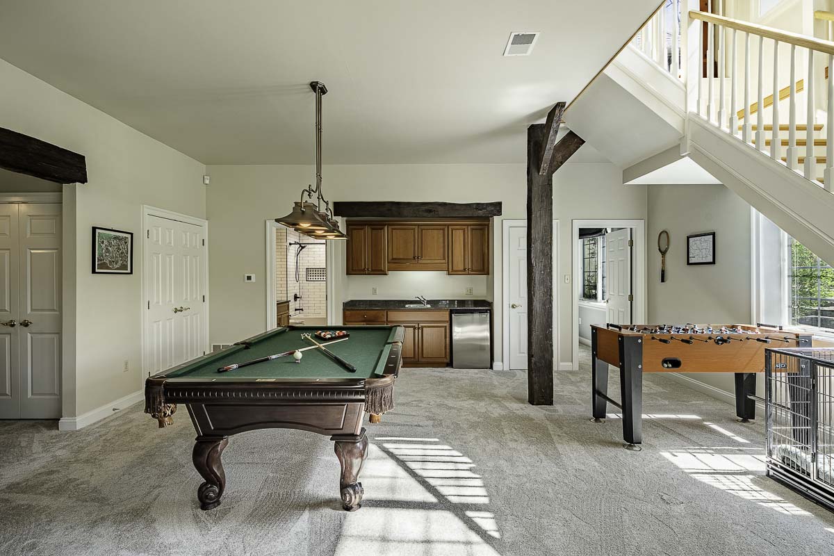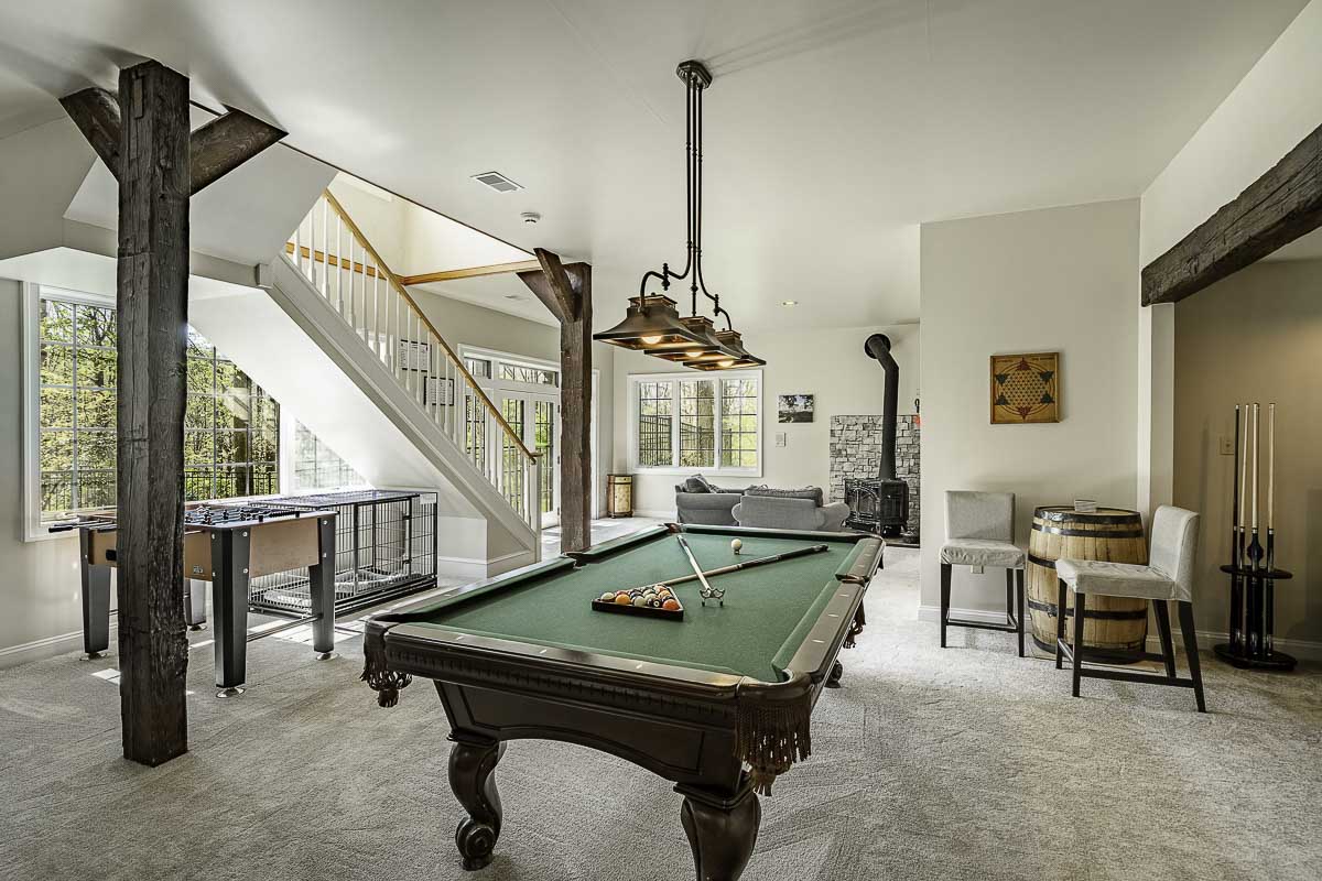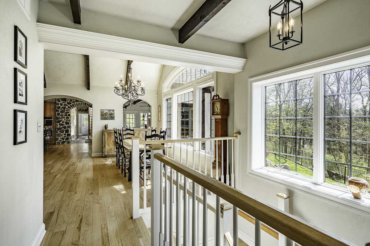 This custom Entrekin-built luxury estate is one of the most distinguished properties currently offered in Chester County. Set on 12 secluded acres and surrounded by protected open space along French Creek, this 4-bedroom, 3 full, 2 half-bath English Manor residence with Tudor-style elements blends timeless style with superior craftsmanship.