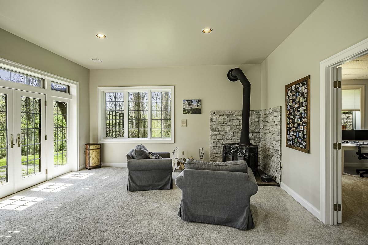 Boasting over 5,000 square feet of living space, the home features handcrafted woodwork, fine millwork, and elegant architectural details throughout. The majestic interior offers a sprawling open floor plan designed for both grand-scale entertaining and intimate living. Recent high-end updates include professionally refinished hardwood floors, new carpeting, a fresh designer paint palette, and fully updated bathrooms. The expansive Great Room (18’ x 40’) serves as the home’s heart, boasting lofted beamed ceilings and a fireplace flanked by custom built-ins. Bathed in southern light, this space flows into a chef’s kitchen featuring premium stainless appliances, including a new double oven and stovetop. Adjacent, the cozy family room offers a second floor-to-ceiling stone fireplace. A stone archway leads to a practical wing housing a freshly painted 3-car garage, laundry with exterior access, and a guest powder room. On the opposite wing, the main-level primary suite provides a private sanctuary with a lofted ceiling, south-facing deck access, and a spa-like bath with a whirlpool tub. The upper level features two bedrooms with a Jack & Jill bath. Practical elegance continues with significant infrastructure improvements for total peace of mind: a new roof and skylight, comprehensive HVAC replacement with a soft-start unit, a tankless hot water system, and a whole-house battery backup. Outside, the 12-acre sanctuary offers a repaved driveway, a new shed, and manicured landscaping. The walk-out lower level—complete with a wet bar, new wood-burning stove, full guest suite, and walls of windows—is ideal for an au-pair or multi-generational living. Outside, the entertaining continues on a sprawling patio anchored by a magnificent stone fireplace. Located in the sought-after Owen J. Roberts School District, this stately property is protected in perpetuity by a conservation easement held by the French and Pickering Creeks Conservation Trust. A home of this caliber—so rich in quality and meticulous updates—must be experienced in person to be truly appreciated.
